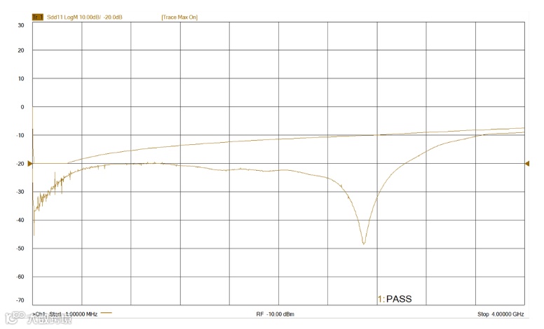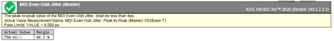 DUT处于slave模式时,还需要进行S参数的测试。与百兆和千兆不同,MiltiGBASE-T1只进行回波损耗测试,即只关注Sdd11参数。此项测试与百兆和千兆PMA测试一样,主要由VNA完成,示波器只起到获取测试数据并显示测试报告的作用。