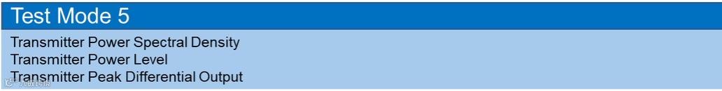 测试模式5,用于验证发射机是否符合发送PSD掩码和发送功率的级别。此模式下,DUT中的PHY被配置为正常的MASTER模式,且主动传输空闲的信号帧。