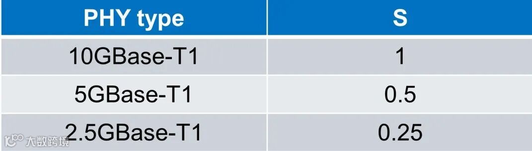 备注:S=1,即缩放参数为1,速率为10GBase-T1