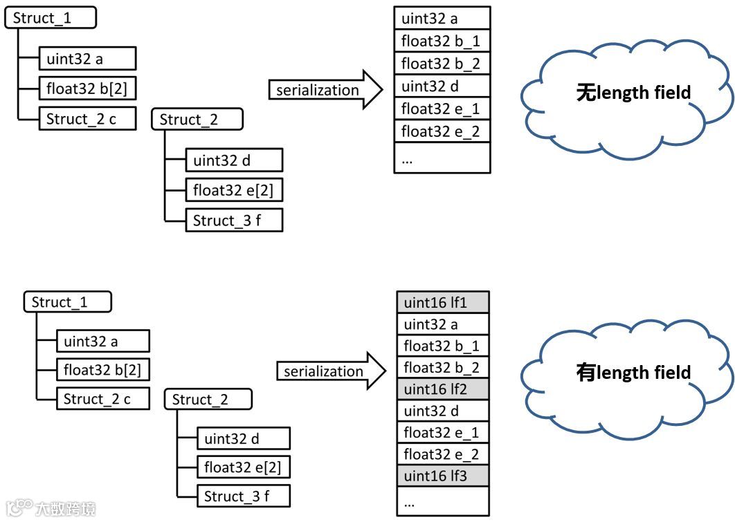 ②可增加Length Field来指示结构体中数据元素的字节长度,而嵌套的结构体,也同样需要增加Length Field。