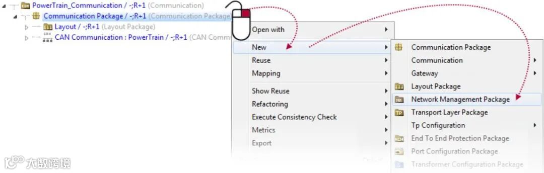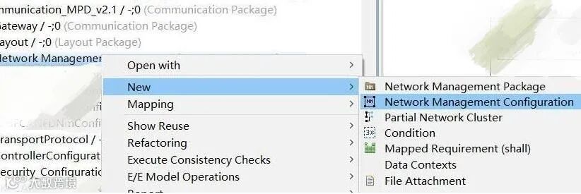 在PREEvision中有专门用于放置Nm配置的Network Management Package,创建位置如下: