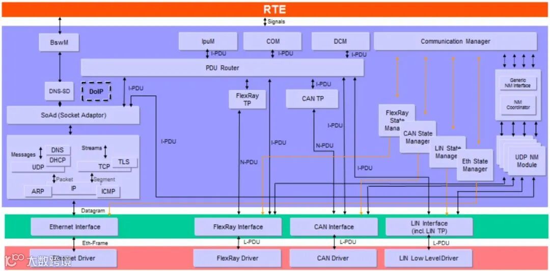 图2中框出了AUTOSAR NM体系,其中各个模块又有不同的作用: