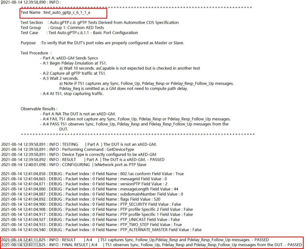 本次测试使用了支持gPTP的DUT终端件,参考Avnu gPTP一致性测试规范,使用IxNetwork软件及其自带的测试脚本,选择了“验证DUT端口是否可以正常配置为master或slave”的测试,演示了进行gPTP测试的流程和操作方法。使用软件自带脚本进行测试时,建议选择手动控制模式,测试过程中,根据窗口提示,进行交互操作,这样方便监测整个测试的过程。在测试过程中,可以打开IxNetwork的API,实时查看测试的进度。