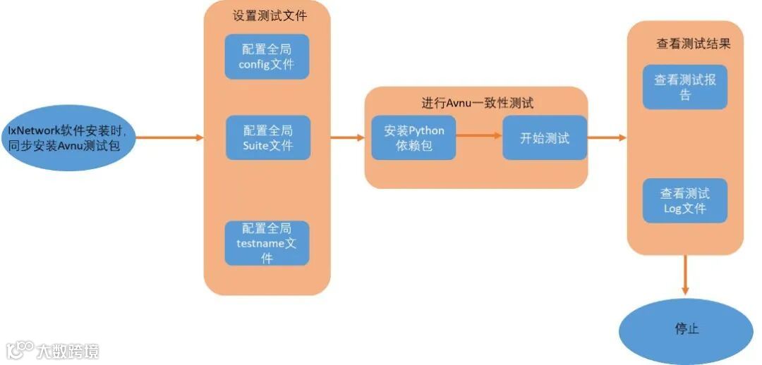 测试流程为:软件安装——硬件配置——配置测试文件——运行测试脚本——生成测试报告——分析测试结果和log文件
