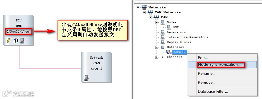 Step3:在CANoe中的Simulation Setup中进行节点同步Node Synchronization,实现IL仿真;