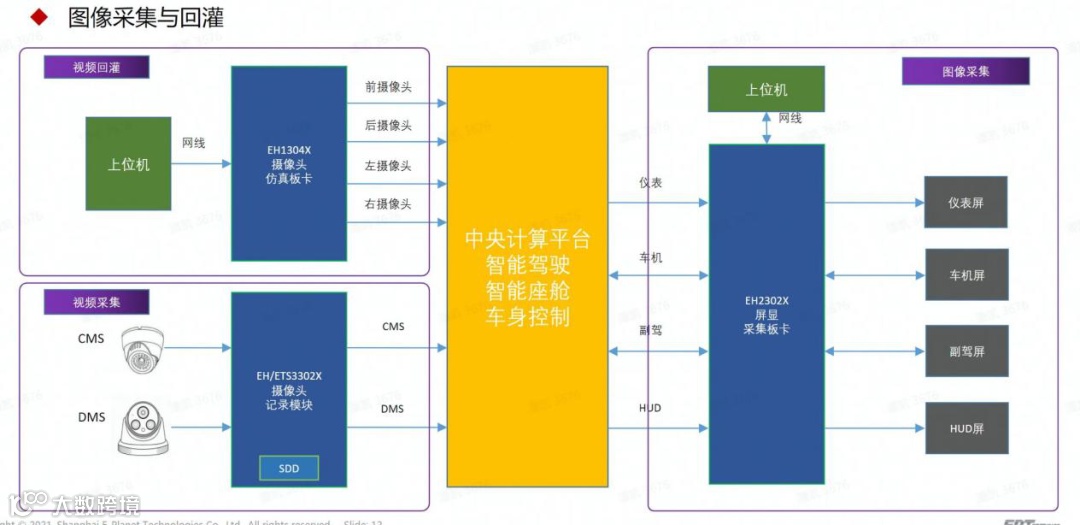 怿星作为最早研发座舱测试相关产品的团队之一,在车载图像采集仿真的技术领域上有着丰富的经验。其中,EH系列图像采集板卡,能很好的解决座舱测试中的痛点,并在众多项目实践中广泛应用。