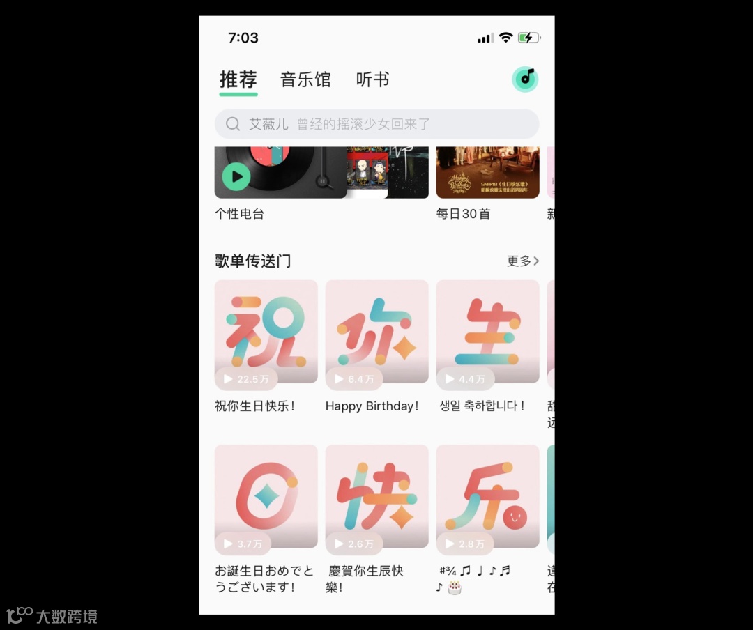 上班、下班、生日、节日、纪念日等,这种特定的场景,给用户“来点仪式感,”会给用户带来不一样的感官体验。例如下图某款音乐软件,在您生日当天,将封面换成对您的祝福语。