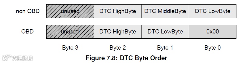 DTC(诊断故障码,长度3字节),用来记录ECU发生故障时的故障信息,比如故障触发条件、故障解除条件、系统功能表现等。