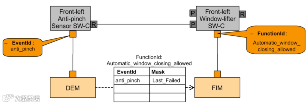 ● Monitored Component:“被监控组件”是由DEM提供给特定被监控组件(硬件组件或信号)的标识符。“被监控组件”的FAILED状态表示所有分配的监控功能的结果和从其他DEMComponent继承的故障信息