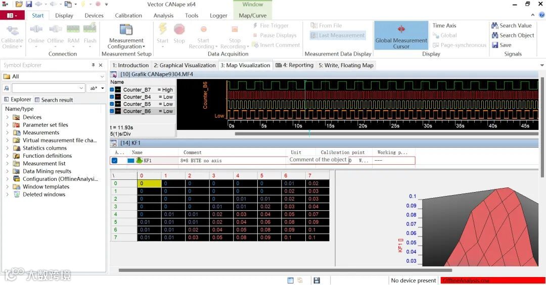 除了数据采集主机和数据采集设备,CANape作为数据分析工具,提供在线监测、离线播放和数据分析。它可以显示雷达、视频、点云以及各种ADAS传感器数据。用户还可以通过CANape集成的CASL编程语言来实现自定义的数据分析和处理。