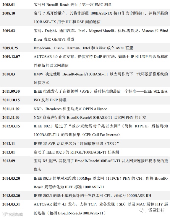 以下是我为大家梳理的车载以太网发展相关的重要时间节点,供大家参考:
