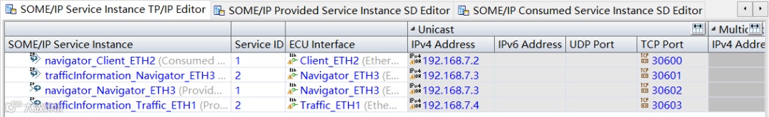 1)首先需要创建Service Instance(一般借助于PREEvision的信号路由功能,前提是已完成软/硬件的映射设计)。路由之后生成的Service Instances分为两类:Consumed SOME/IP Service Instance和Provided SOME/IP Service Instance。接下来就是完成Service Instance的Service ID及版本等参数的设计。