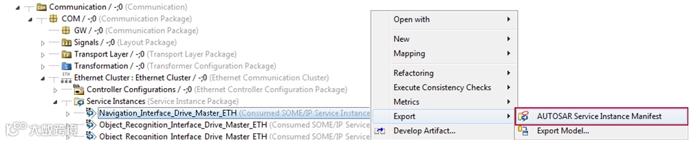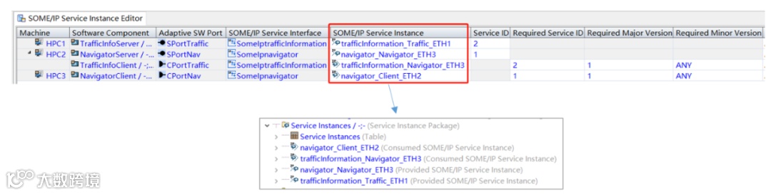 从软件架构的角度, AUTOSAR Adaptive是一种面向服务的架构(SOA);从通信角度,AUTOSAR Adaptive系统采用面向服务的通信。Service Instance(服务实例)是服务角色在通信层面的一种实现,分为Provided Service Instance和Consumed Service Instance。在本示例中,采用SOME/IP作为应用层协议,实现面向服务的通信。此处Service Instance的设计,其实主要内容就是进行基于SOME/IP的通信配置。