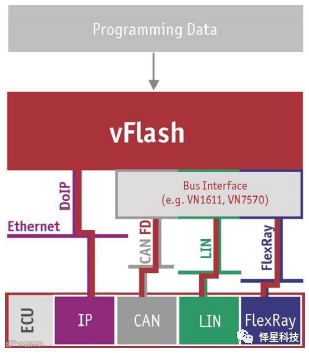 vFlash软件还可以通过更换Vector不同总线类型的Vector硬件网络接口卡,从而实现CAN/CANFD/LIN/DoIP等不同总线刷写。