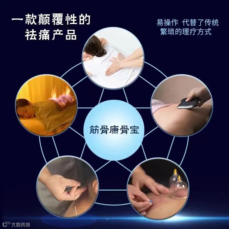 筋骨康骨宝(导光凝胶)+筋骨康骨宝(砭贴),先用滚珠涂抹,待干,再使用砭贴敷贴即可。