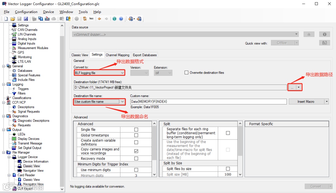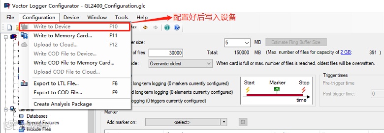 至此,一个完整的报文录制过程就完成了。这只是其中一种触发方式,其他路试过程中的定制化需求同样可以在Vector Logger Configurator中设置。