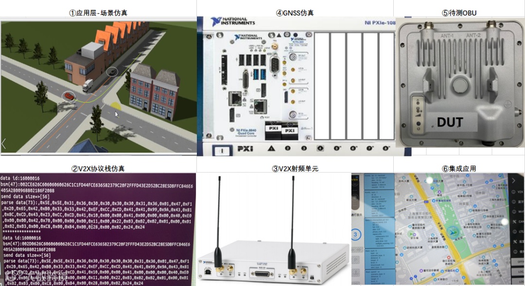 基于专业的商用射频测试平台,比如NI、Keysight等的射频单元,实现V2X消息的实时模块,支持至少100辆以上的车辆模型测试。
