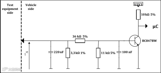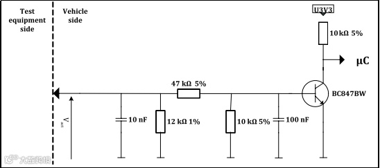 ISO 13400-3中给出了Option1和Option2两种激活线的推荐电路,具体元器件参数见ISO13400-3规范。
