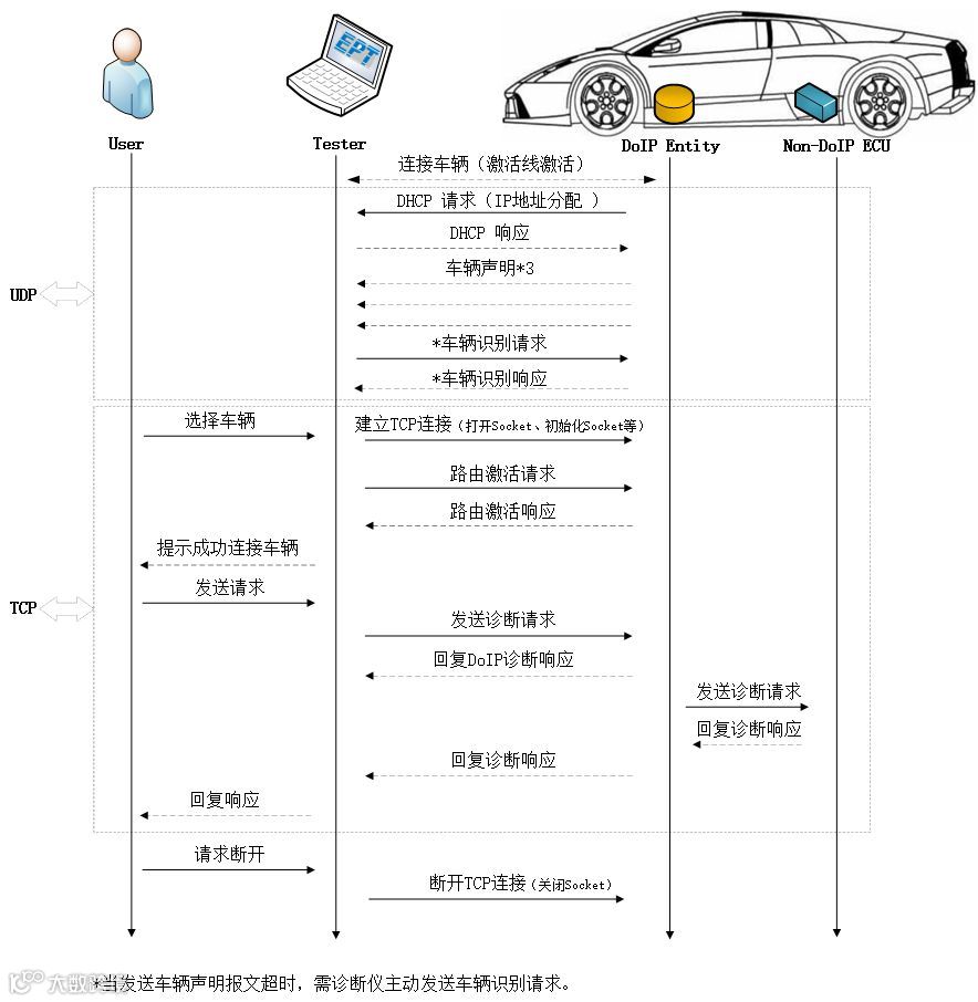 DoIP的会话流程如下图: