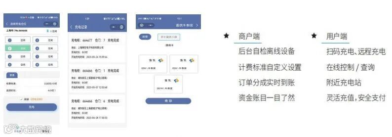订单信息、运维管理、收支查询等,实现充电过程的平台化数据管理。