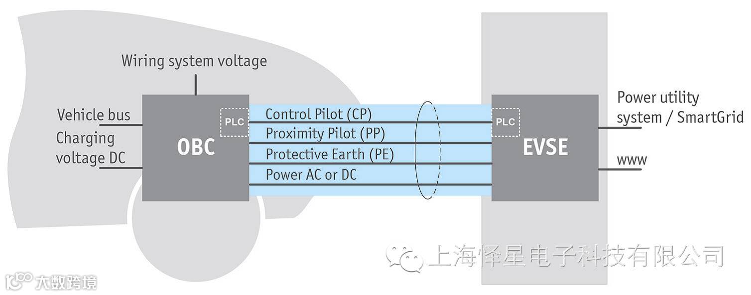 图1:充电ECU(OBC-OnboardCharger)和充电桩(EVSE)的连接图