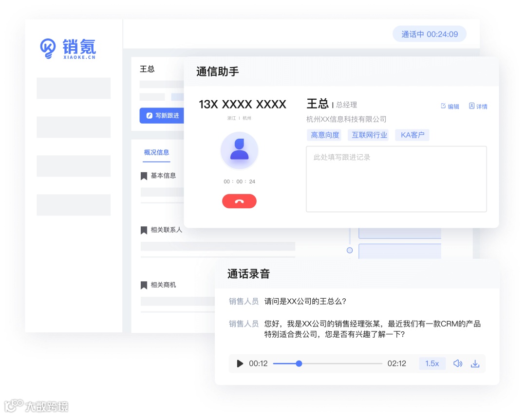 销氪通信助手的一键拨号功能简化了拨打流程,省去了手动输入号码的繁琐操作,使销售的外呼效率得到了显著提升,从平均每小时27通增加至45通。