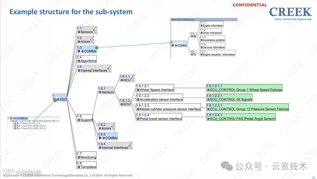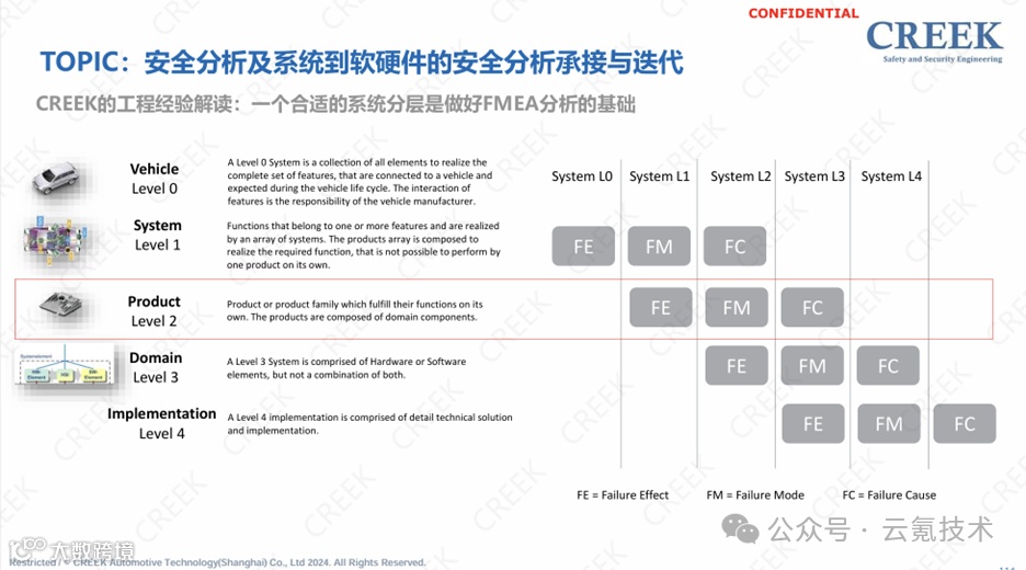 功能树建立与层级定义,强调了层级划分的重要性,只有定义好组件的层级,才能更好地理解功能的定义。这里不得不回顾云氪专家讲坛系列课程——安全工程的开端第一讲:FTA和DFA中关于系统层级的定义。