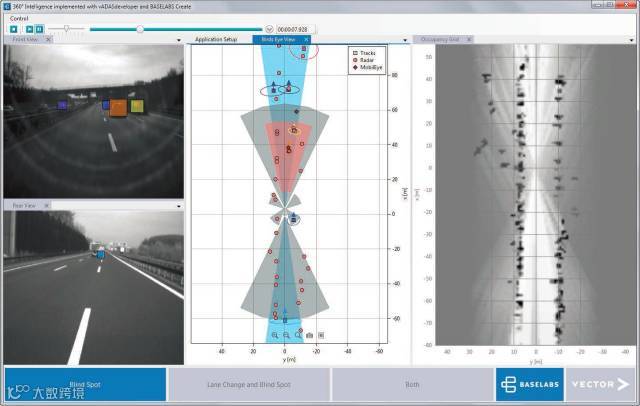 图5: vADASdeveloper中的对象可视化,可适用于包含任何动态或静态场景的应用开发,如高速辅助、带盲点监测的变道辅助和自动泊车功能