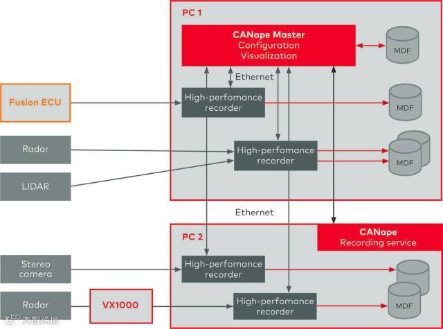 图3: ADAS数据记录方案,适用于ADAS开发中XCP on Ethernet、视频、雷达数据的高速采集