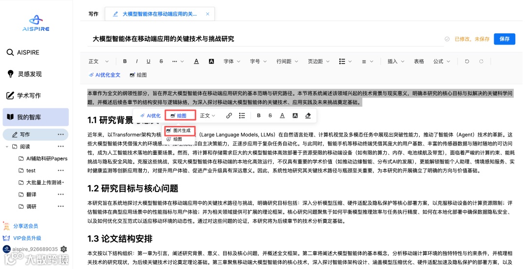 段落/Prompt 文生图:选中段落或输入提示词,一键生成插图 -
