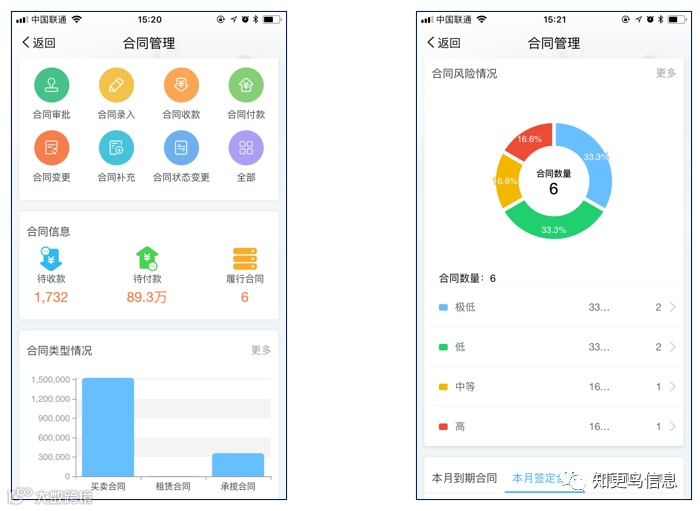 合同管理一体化平台可以实现客户管理、合同的起草、审批、收款、监控、统计查询等功能在同一平台完成,并对单位的合同及相关数据进行统一规范管理,大大节省人力物力,提高工作效率。