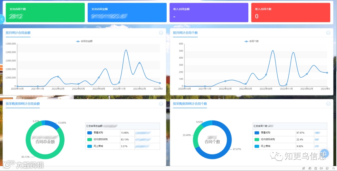 ► “平台”对采购合同实施全生命周期监管,开发了“审计管理模块”,融合对接了“招标采购管理系统”“资产综合管理系统”“财务网上综合服务平台”和“电子签章平台”等业务系统,打破了合同管理有关数据孤岛,实现合同相关数据一表通用、数据共享,所有合同意向发起、拟制、审批、用印、验收、审计、固定资产入账等全线上运行,并为财务无纸化报销预留接口,可实时掌握合同意向发起、招标采购、用印、审计、验收、变更等流程进度。