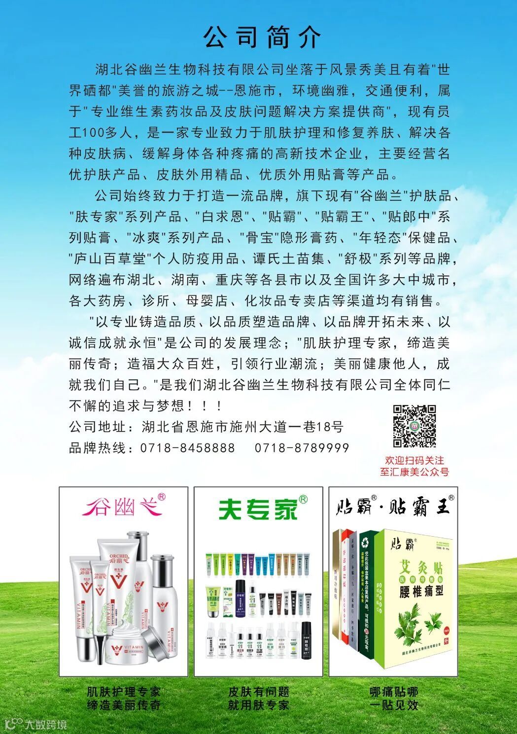 嗟夫!习李时代,图强盛世乾坤!谷之幽兰,引领行业潮流。室有兰旋,其香弥远;肤之专家,其颜也仙。锦绣山河,集天地之灵气,取其精华;调物候于阴阳。百宝谷幽兰,萌春蕙而飘芬芳,敛喜乐于肺腑,披豪华之盛妆。其效岂止美颜,亦可抗皱延衰;天然生物而成,实乃上上之品。诚信致远,英雄莫问出处;初心如磐,奇迹永属幽兰。