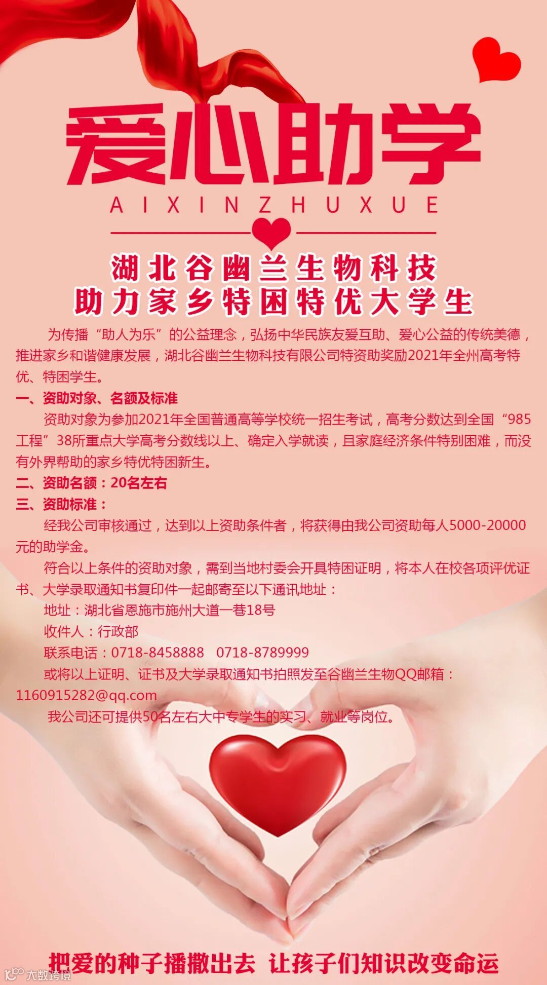 湖北谷幽兰生物科技2021资助特困特优大学生活动开启