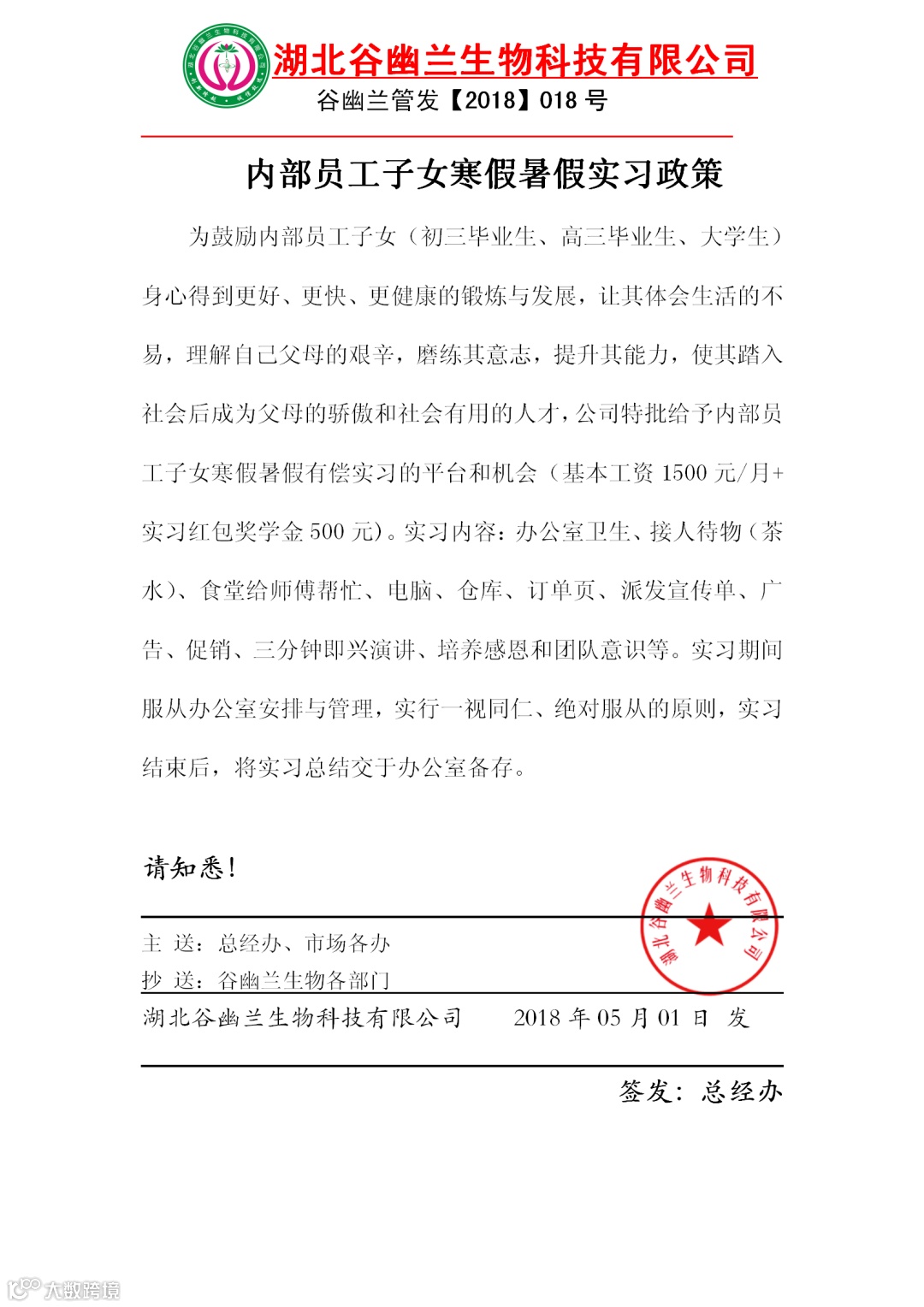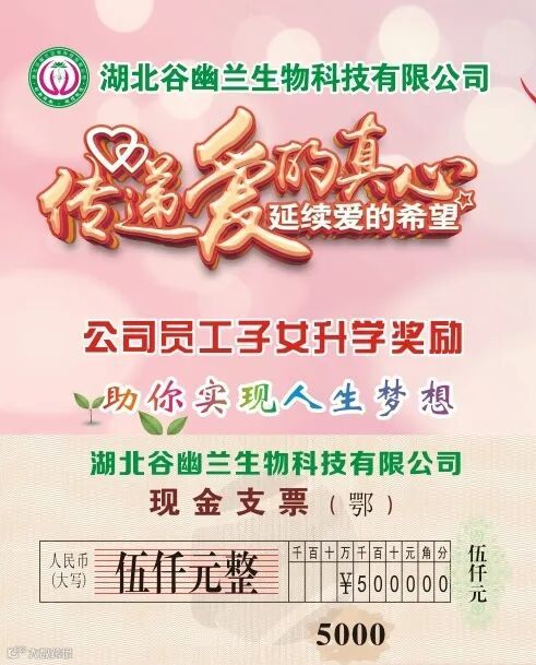 多年来,湖北谷幽兰生物科技一直关注家乡教育,重视家乡各种爱心公益,多次开展了助学圆梦等捐资家乡贫困学生活动,并定制了公司内部员工子女升学奖励制度,还提供了员工子女寒暑假在公司实习政策,公司爱心捐资奖励优秀学子的行动,不仅温暖人心,更是对学生的最大鼓励。
