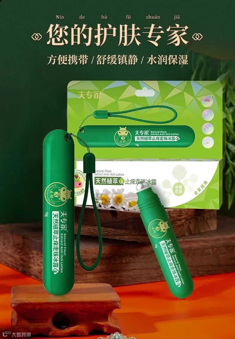 幸好随身带了这款夫专家止痒走珠冰露,用它涂一涂,冰凉感包裹着,很舒缓痒痒,也避免了起肿包。