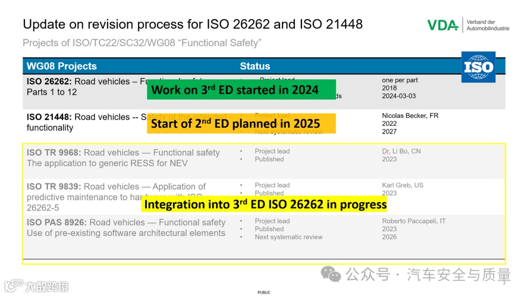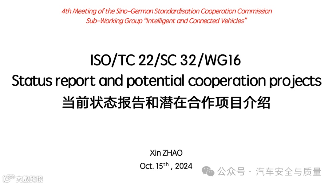 为什么今天要聊这个话题,因为中德标准化年会上,ISO32/WG8来自Mercedes Benz的Mr. Andreas Knapp和来自Schaeffler的Mr. Matthias Maihofer先生一起进行了ISO26262及ISO21448的专题汇报。