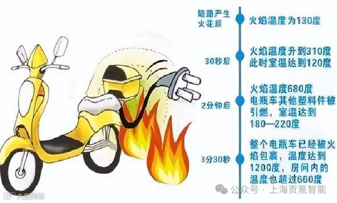 电动自行车火灾发生时用四个字来形容就是:快、热、炸、毒