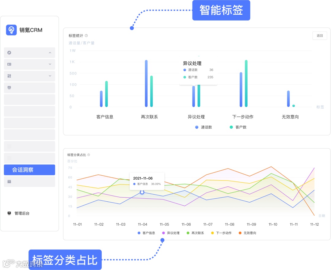 在通话结束后,系统会根据对话内容自动标记客户为“需求确认”或“价格谈判”阶段。销售主管通过后台的统计分析功能,可以清晰地看到不同标签下的通话量和客户量占比。这使得销售主管能够迅速把握销售团队沟通的侧重点,如发现“需求确认”阶段的客户量占比突然增加,管理者可以及时调整资源分配,加强这一阶段的跟进力度。