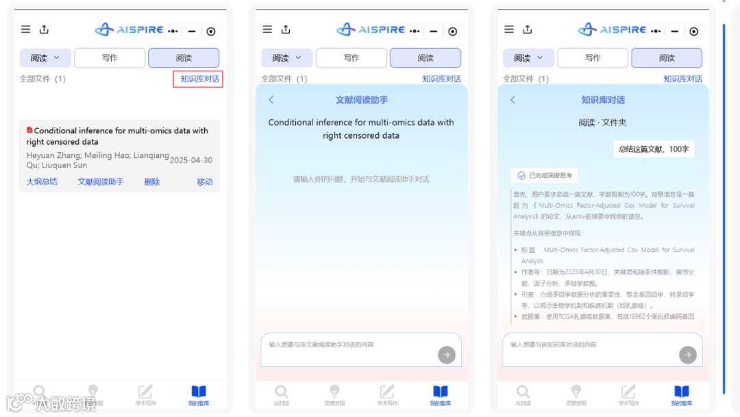AIspire 小程序 V0.0.4 已正式上线! 这一版本,我们聚焦三个核心模块:AIspire对话、灵感发现、我的智库, 让科研体验变得更敏捷、更贴心、更智能。