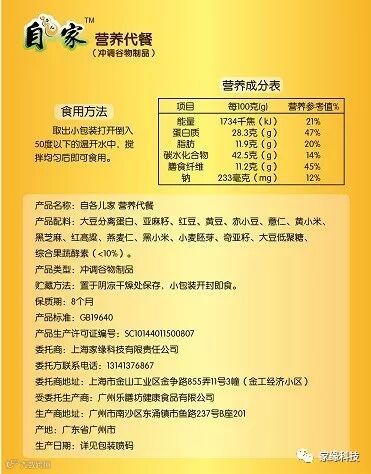 自各儿家营养代餐粉上线