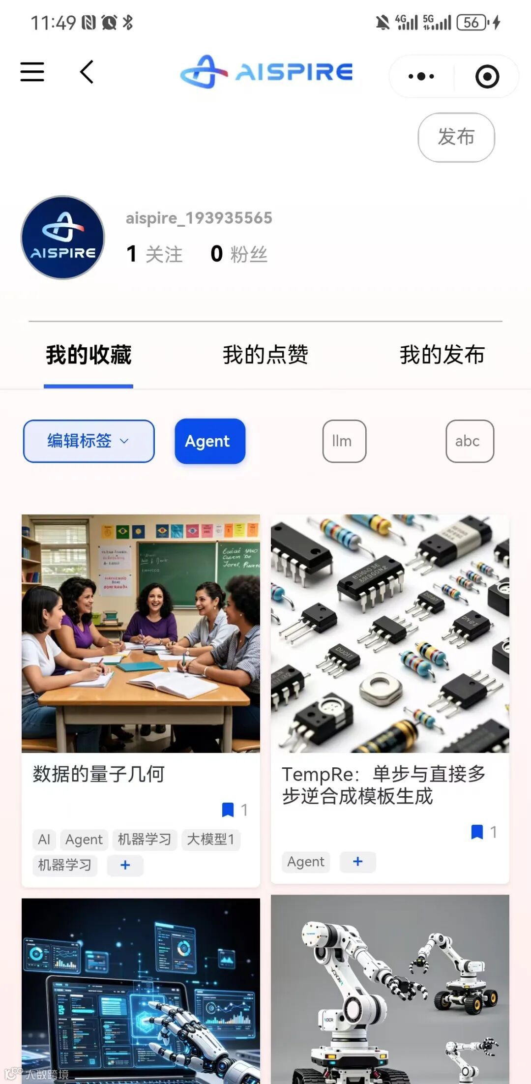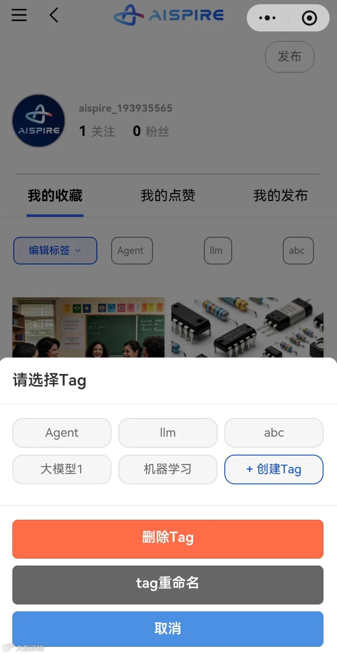 在“我的收藏”、“我的发布”里,点击标签即可快速按主题分类查看