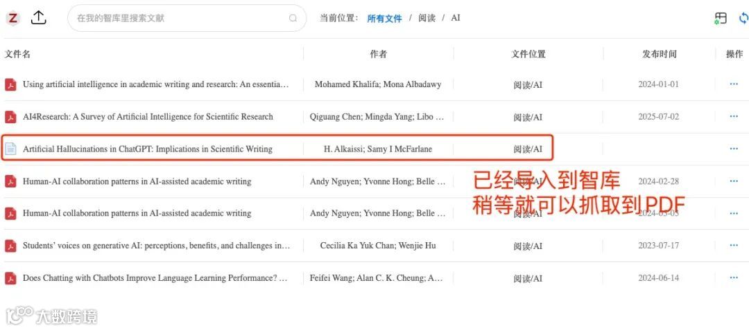 从AIpisre聊天框找到文件-存到“我的智库”并自动抓取PDF阅读的全过程示例:
