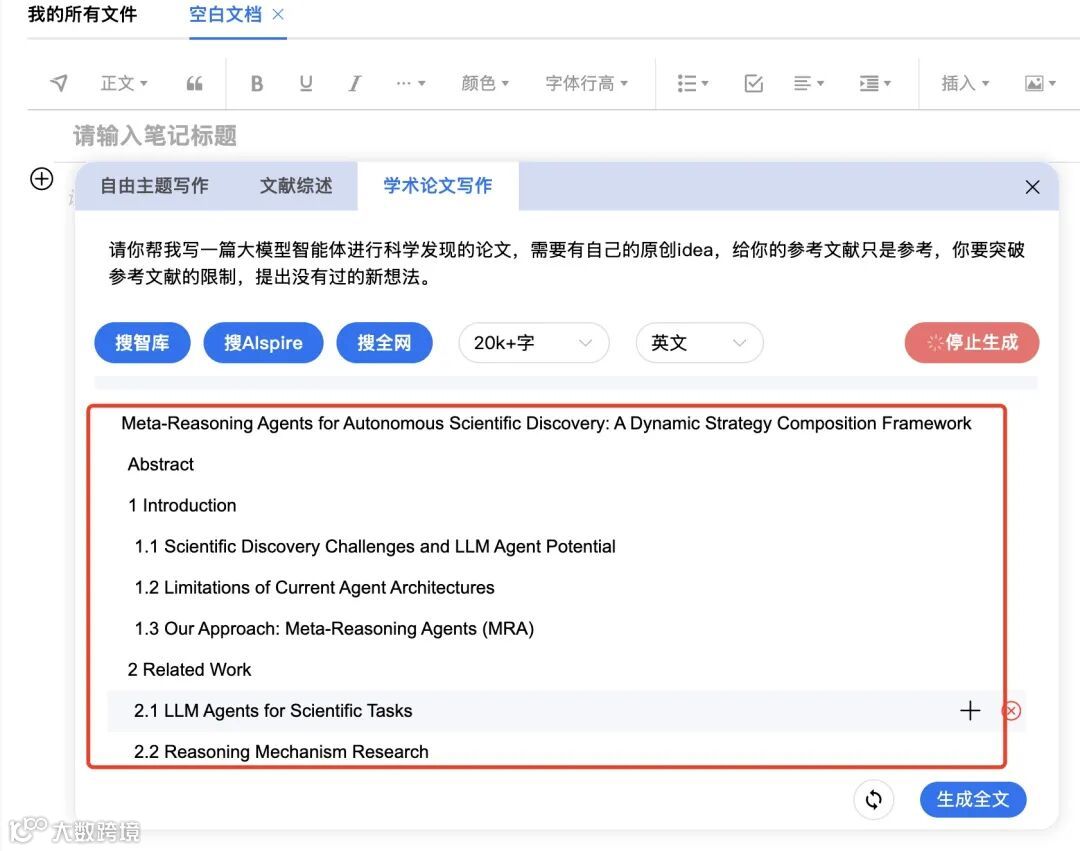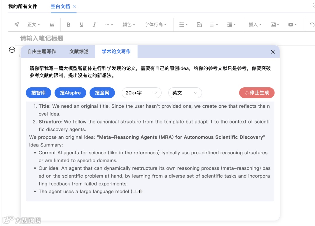 输入核心研究问题或主题,启动写作。