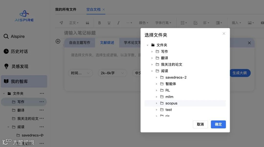 告别低效的手工整理!AIspire 文献综述模块,让基于个人知识库的综述撰写变得前所未有的高效和清晰。
