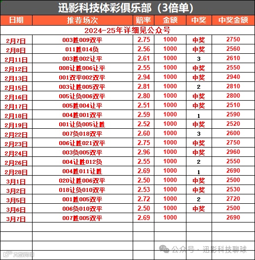 【迅影体彩俱乐部】唯一公众号