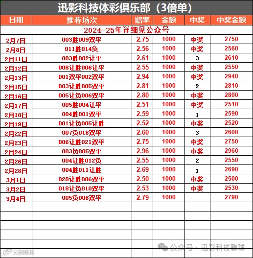 【迅影体彩俱乐部】唯一公众号