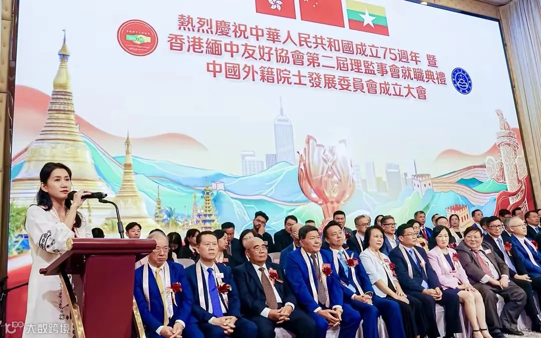Celebrating the 75th anniversary of the National Day: Hong Kong held the inauguration ceremony of the second council of the Myanmar-China Friendship Association. Zhu Xuemei was elected secretary-general on behalf of this magazine (I I A B)