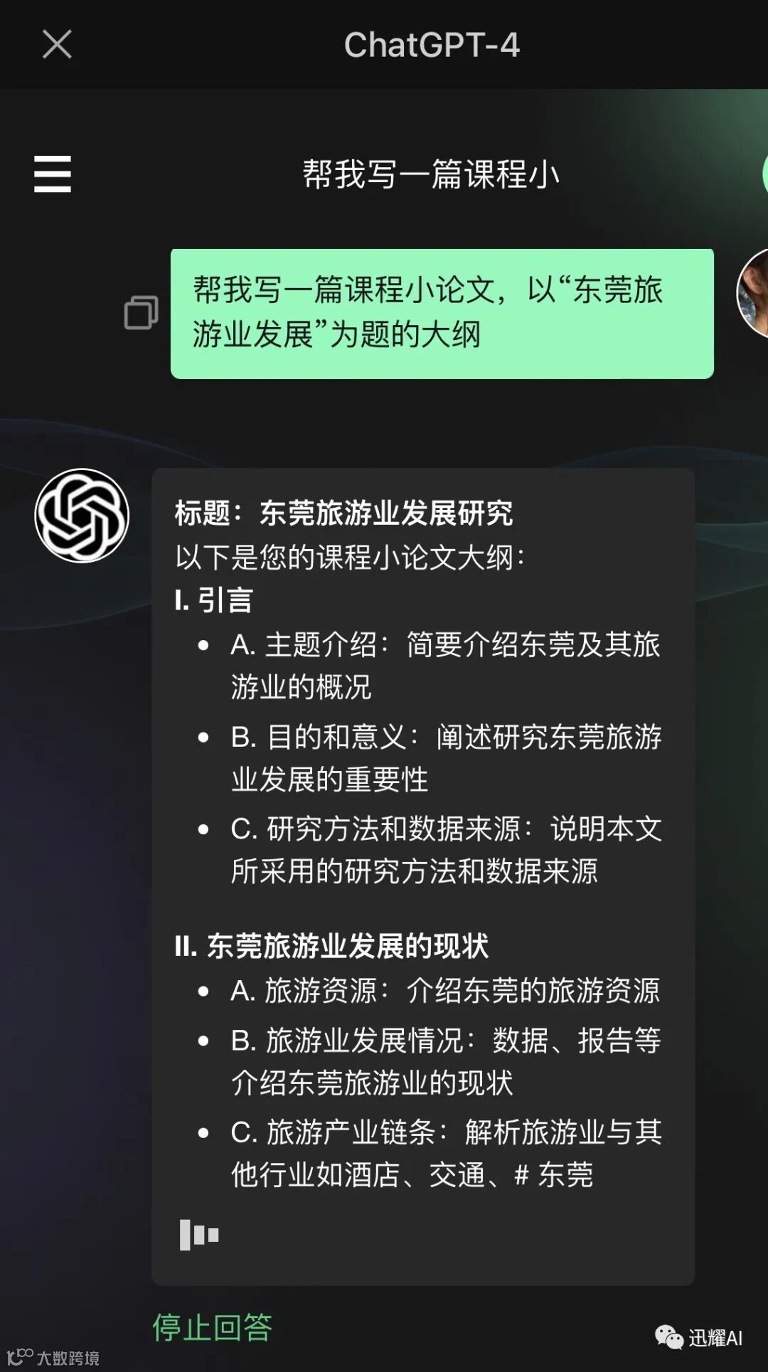 后台菜单栏点击“AI对话”,开启体验ChatGPT3.5,点击“迅耀4.0”就能体验强大的ChatGPT4.0!