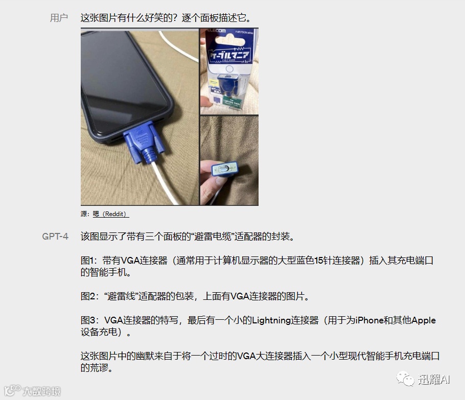 例如,我上传了一张图片,并询问其中有哪些好笑的元素,并逐一列举出来。在回答中,GPT能够以风趣幽默的措辞逐个回答。